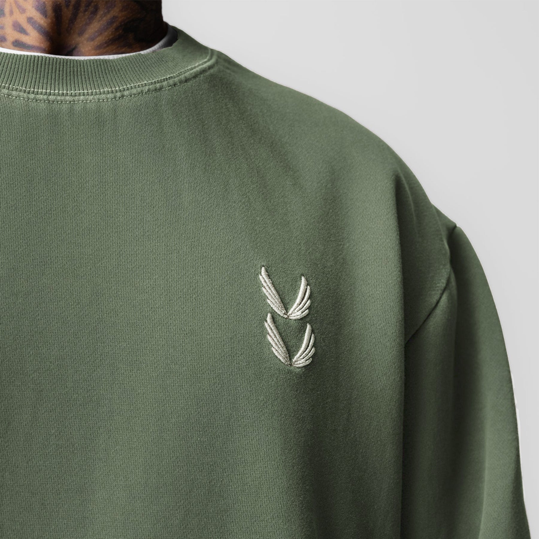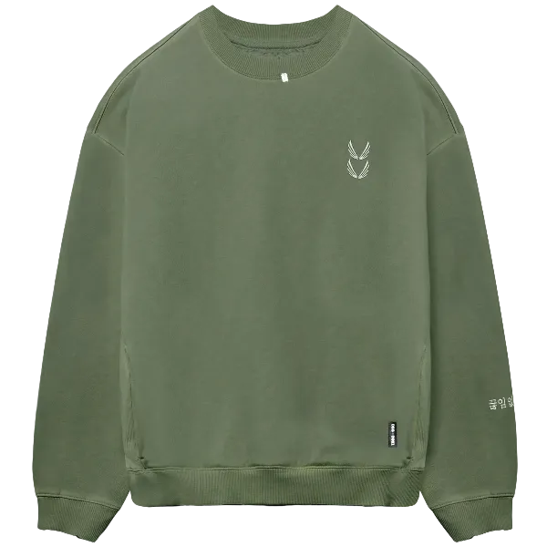 0861. Tech Essential™ Distressed Crewneck - Faded Olive