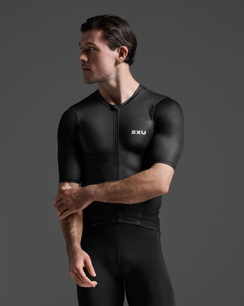 The 2XU Aero Hex Tri Sleeved Top is built for speed, efficiency, and long-course performance. Engineered with SBR HEX through the shoulders and sides to minimize drag, it delivers superior aerodynamics without sacrificing comfort. High-stretch SBR SKIN keeps you cool and dry, while mesh gussets and a full-length zip offer freedom and easy ventilation. Finished with a large back nutrition pocket for streamlined race-day storage.