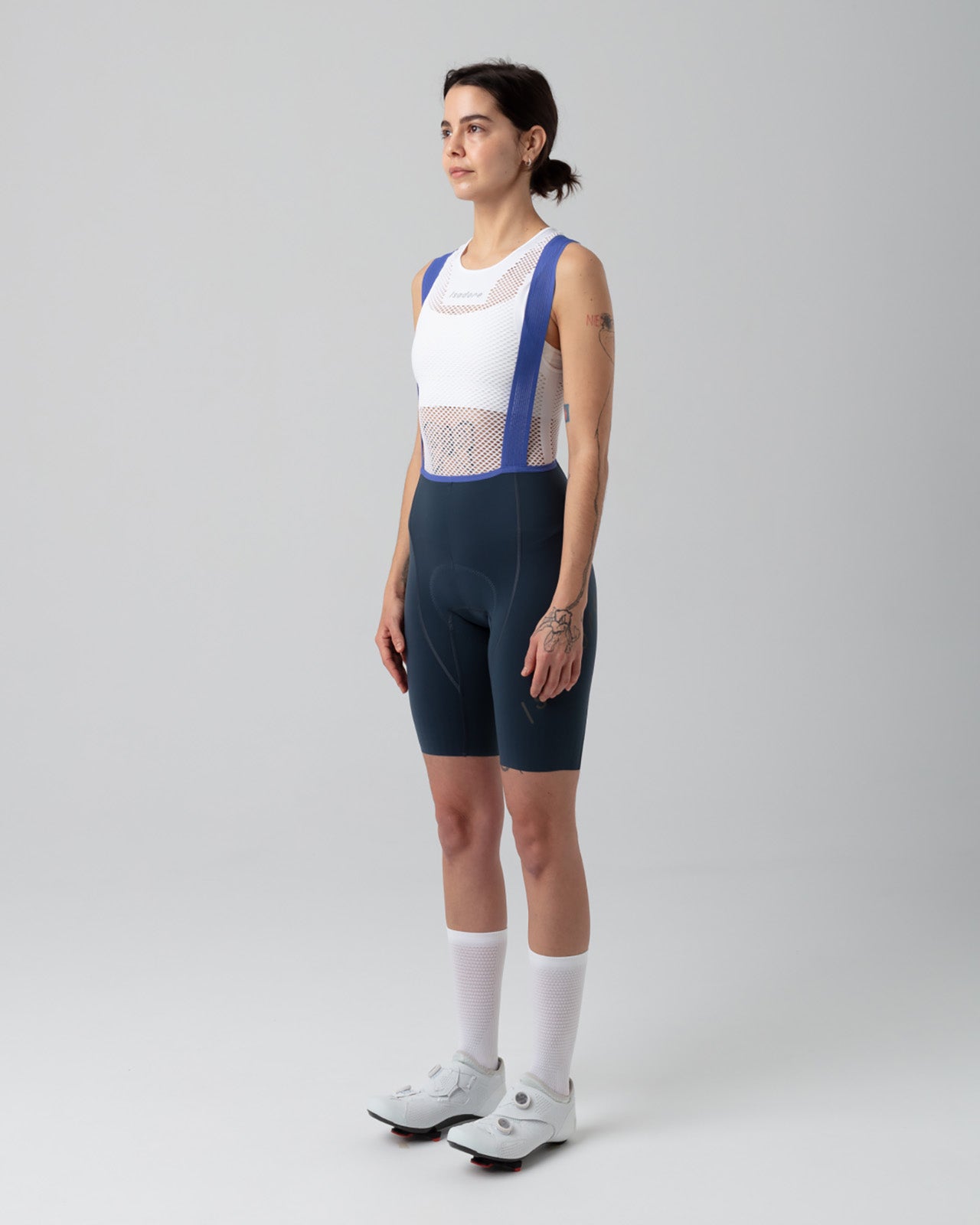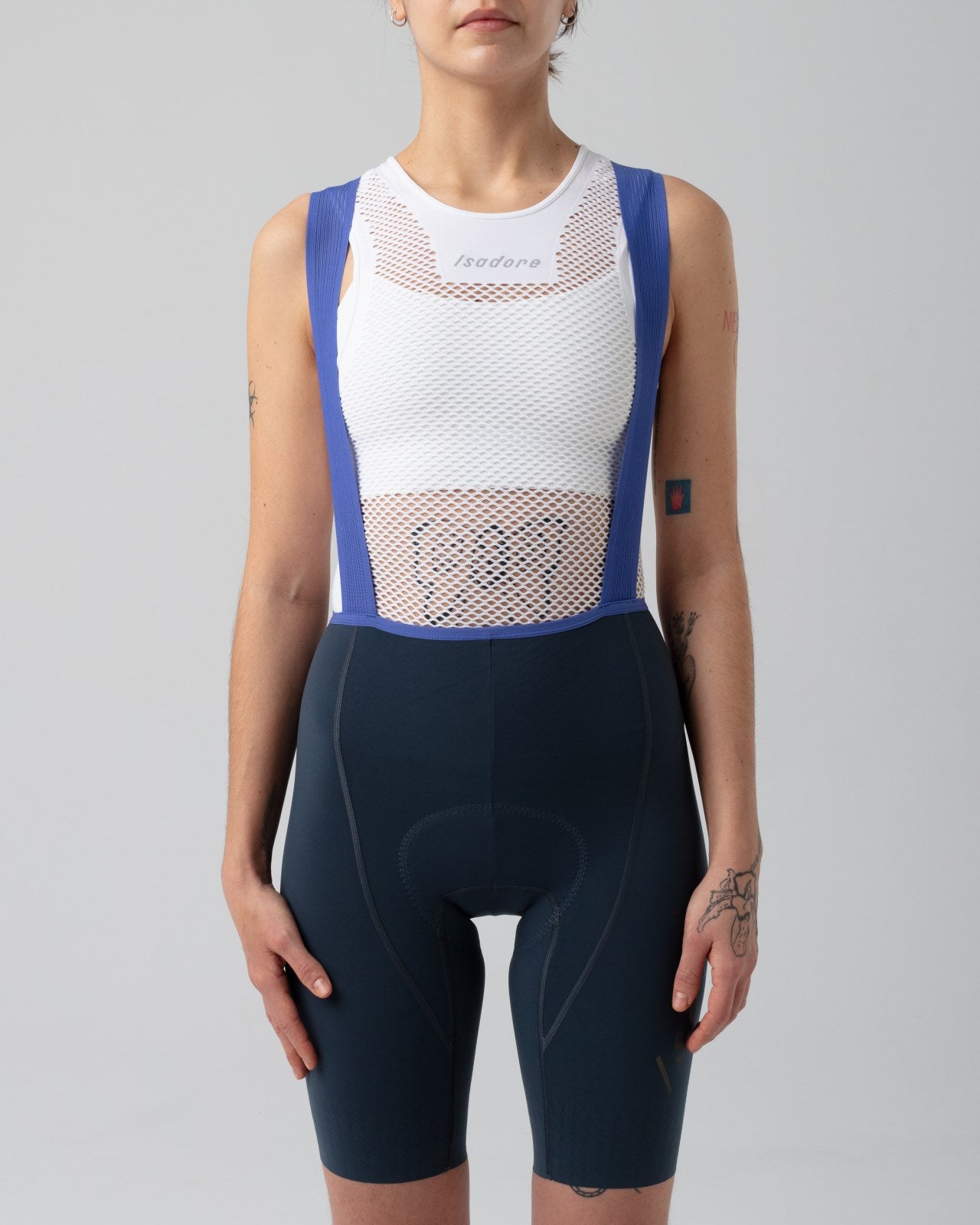 Experience performance and sustainability in one with Isadore's newest iteration of the Alternative Women's Bib Shorts, considerately designed to offer premium aerodynamics on those hot summer rides. Crafted from recycled materials and featuring ultra-fine microfibers with elastane for compression and durability. With a 3D anatomically-shaped biofoam insole and perforated suspenders with moisture wicking properties, these bib shorts provide optimal support and breathability for all-day cycling.
