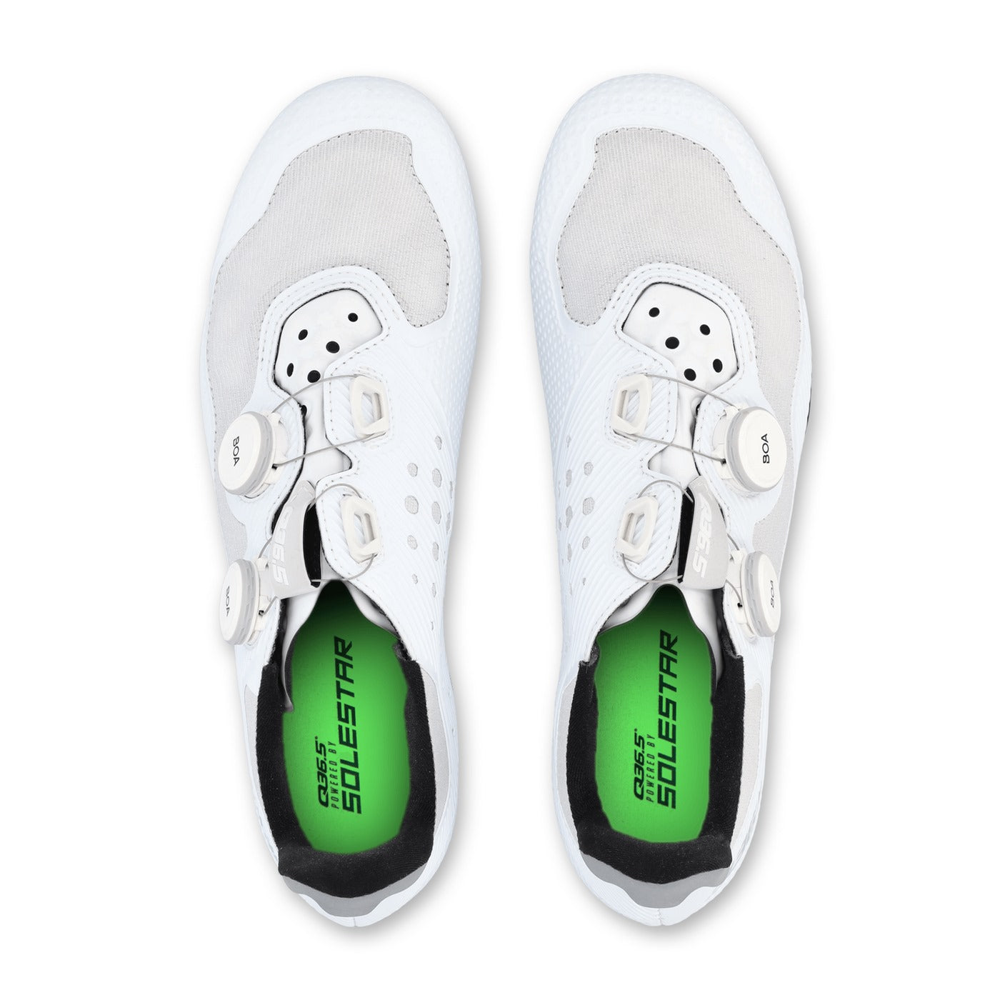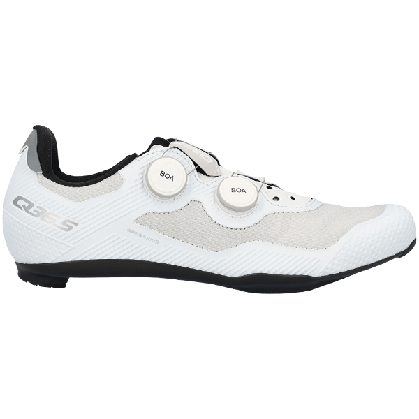 The Q36.5 Gregarius Road Shoes in White combine advanced performance engineering with everyday versatility. Featuring a highly breathable open mesh microfiber upper and a carbon-polyamide composite outsole, they balance stiffness and comfort for efficient power transfer. A wider metatarsal area enhances fit across more foot shapes, while the dual-dial BOA® Fit System provides precise, even closure. Inside, Solestar insoles stabilize the foot in the Optimal Neutral Position for improved comfort and propulsion.