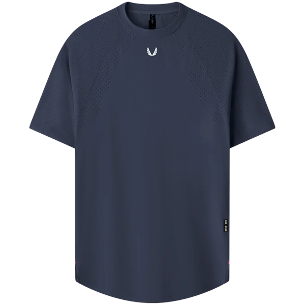 Unleash your potential in the ASRV Laser-Vent™ Established Tee, specifically designed for high-intensity training and running. This white athletic shirt features advanced Laser-Vent™ fabric technology, offering a soft touch, extreme stretch, and superb shape retention. Strategic perforations in high-sweat areas enhance ventilation, while a non-perforated chest panel ensures full coverage. Reflective detailing boosts visibility during night-time activities, making it a top choice for dedicated trainers prioritizing performance and style.