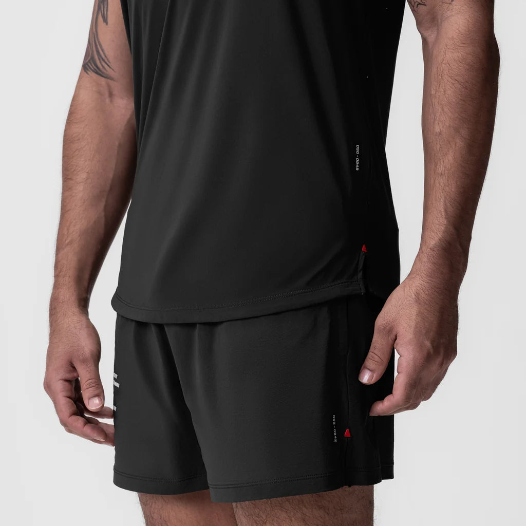 Unleash your potential in the ASRV Laser-Vent™ Established Tee, specifically designed for high-intensity training and running. This black athletic shirt features advanced Laser-Vent™ fabric technology, offering a soft touch, extreme stretch, and superb shape retention. Strategic perforations in high-sweat areas enhance ventilation, while a non-perforated chest panel ensures full coverage. Reflective detailing boosts visibility during night-time activities, making it a top choice for dedicated trainers prioritizing performance and style.