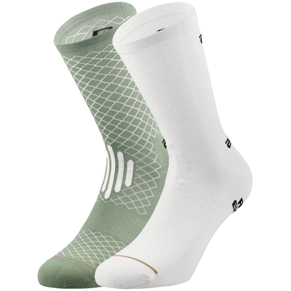 Q36.5's Leggera Socks are designed for the elite cyclist, requiring the thinnest sock technology permits. Designed with strategic mesh panels for high breathability and 3 multi-channel ribbed pedaling zones in the metatarsal area, the Achilles tendon, and at the instep of the foot. Suitable for a tight fitting shoe for a more direct pedaling sensation.